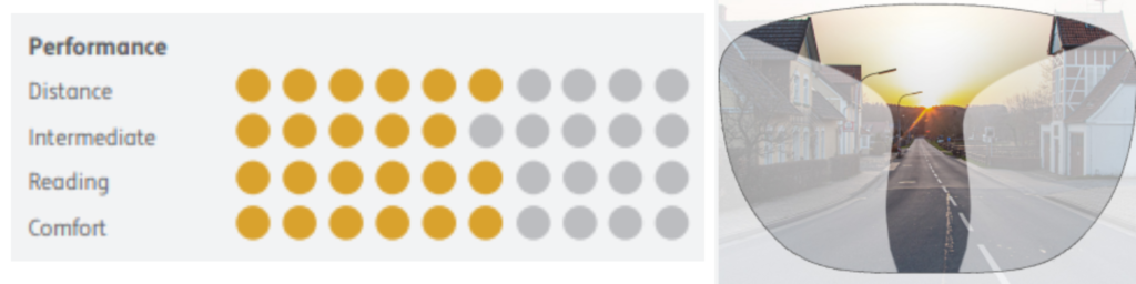 Siren has low overall astigmatism and as such is a great option for emerging presbyopes choosing their first progressive lenses.